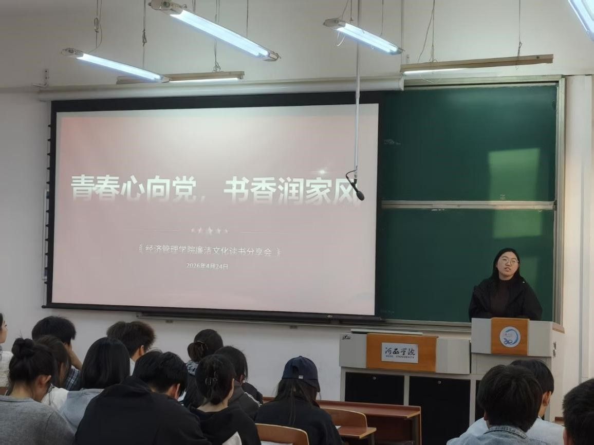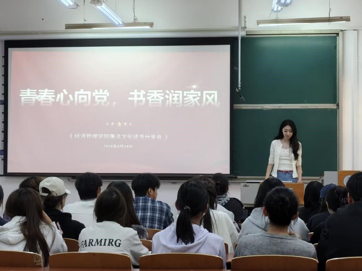 4月24日,经济管理学院团委学生会举办廉政读书分享会。本次读书分享会围绕《齐家——中国共产党人的家风》,通过学习中国共产党人家风故事,引导青年学生赓续红色血脉、涵养优良作风。活动邀请了经济管理学院团委书记到场指导,来自学生会六个部门的同学依次分享了阅读感悟。